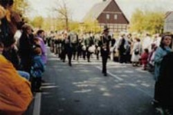 Dann kam für das Jahr 1990 eine Anfrage des Schützenvereins Mönninghausen-Bönninghausen. Hier beteiligten wir uns erstmalig zum Schützenfest 1990 am Umzug am Sonntagnachmittag. Als wir dann nachher an der Theke im Festzelt standen, sagte der damalige Oberst Konrad Thiemeyer: